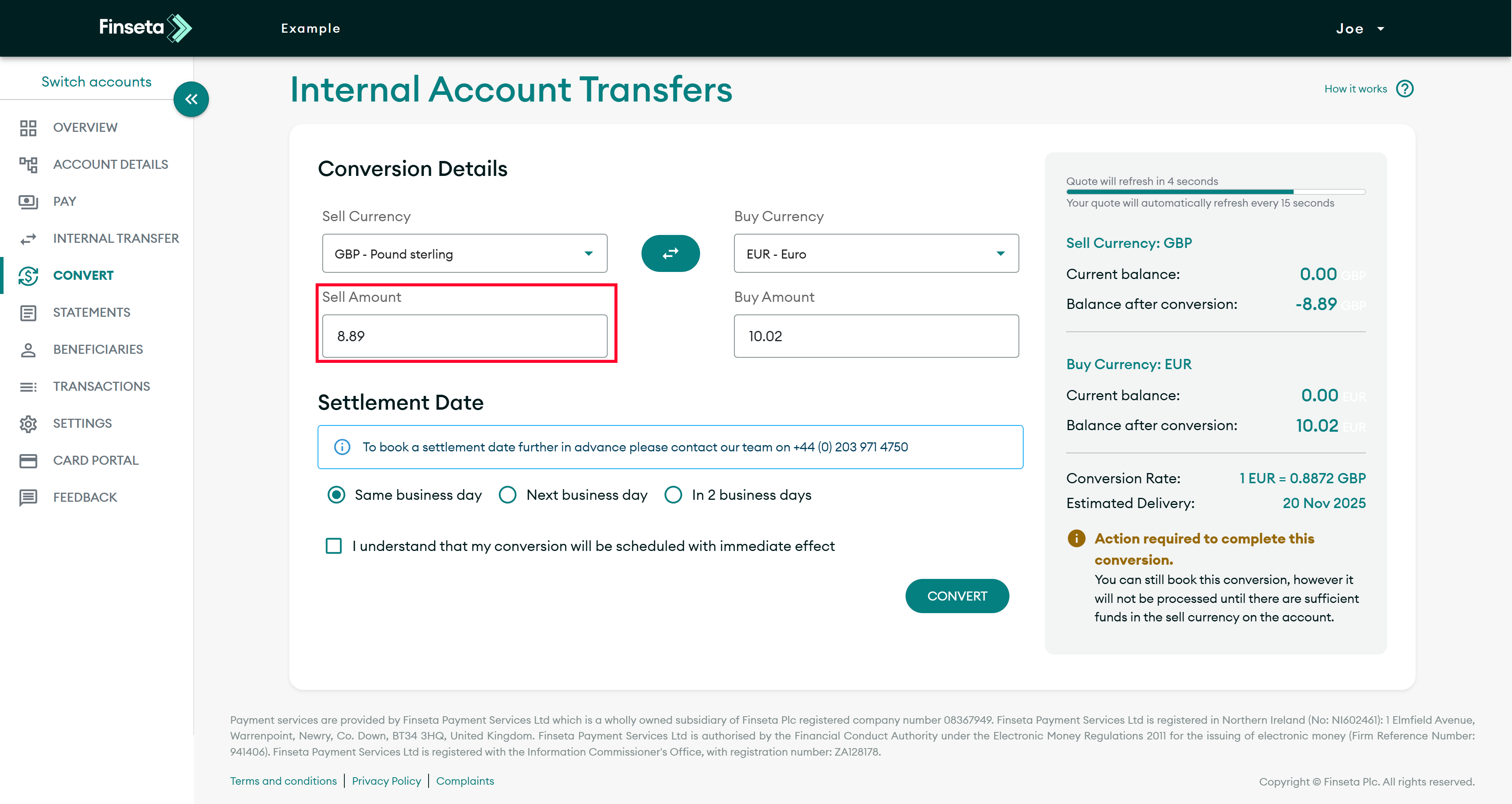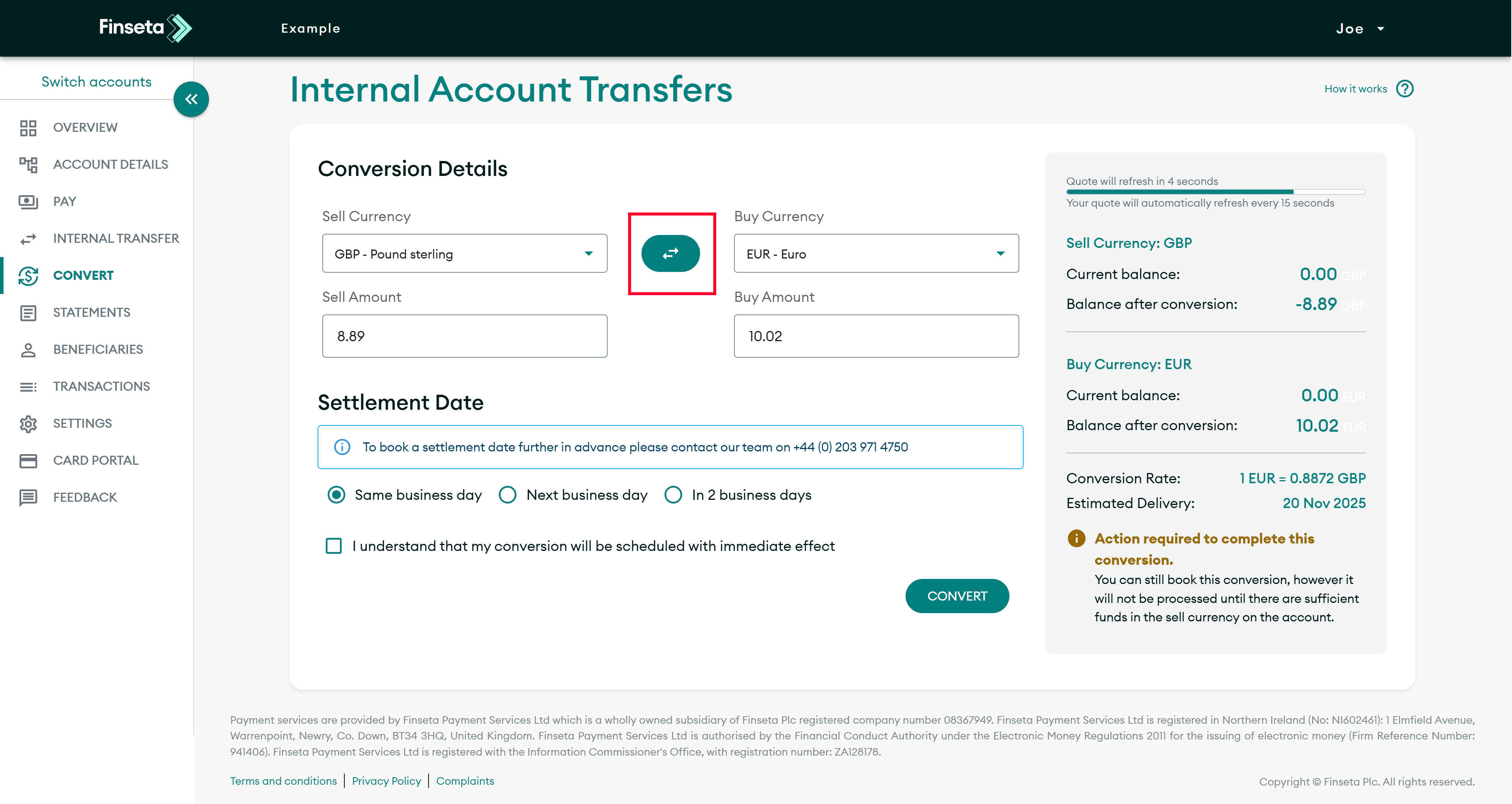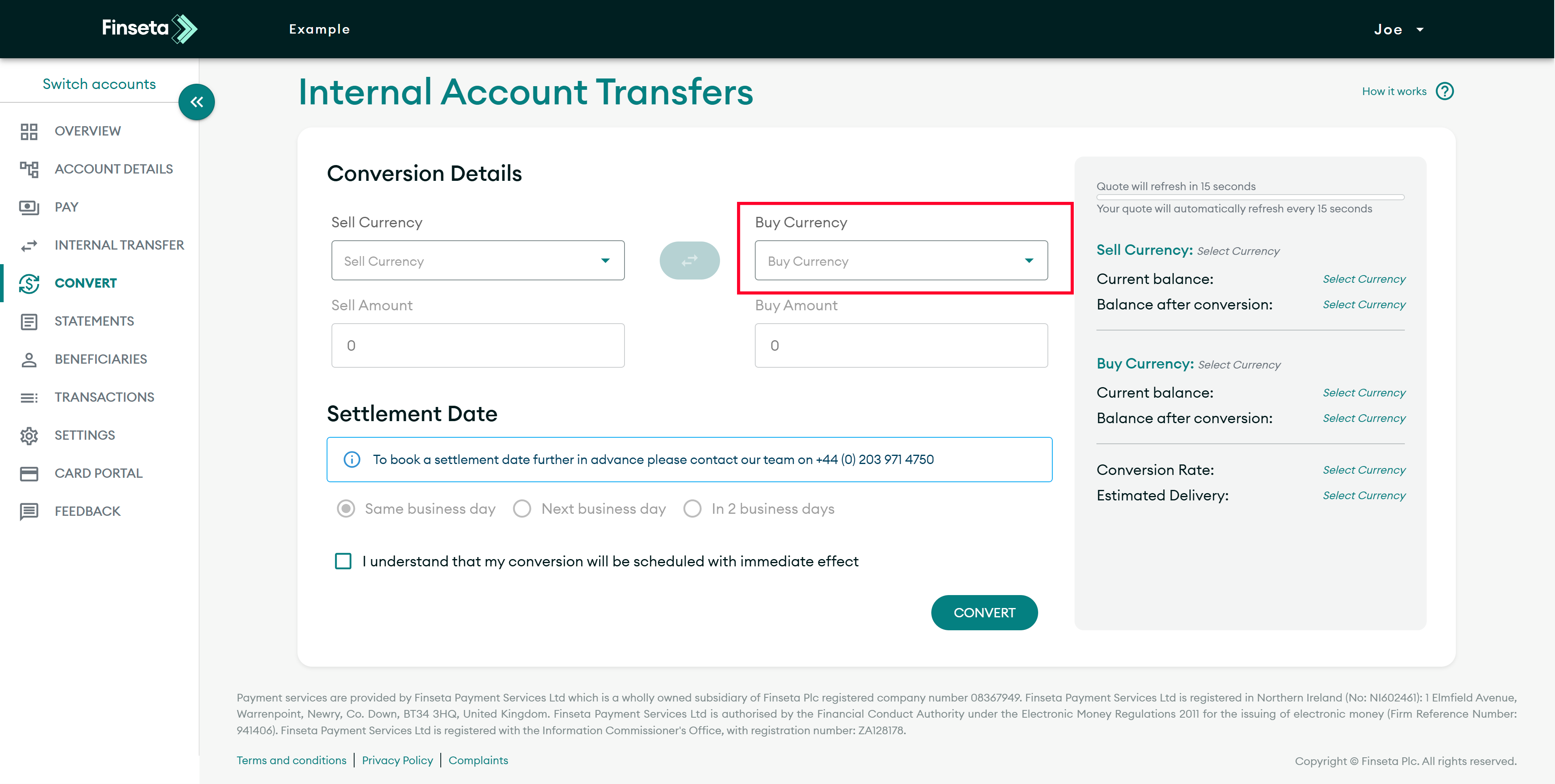 Whether you’re managing cross-border transactions or simply need to exchange funds between accounts, our platform enables you to convert currencies with just a few clicks.