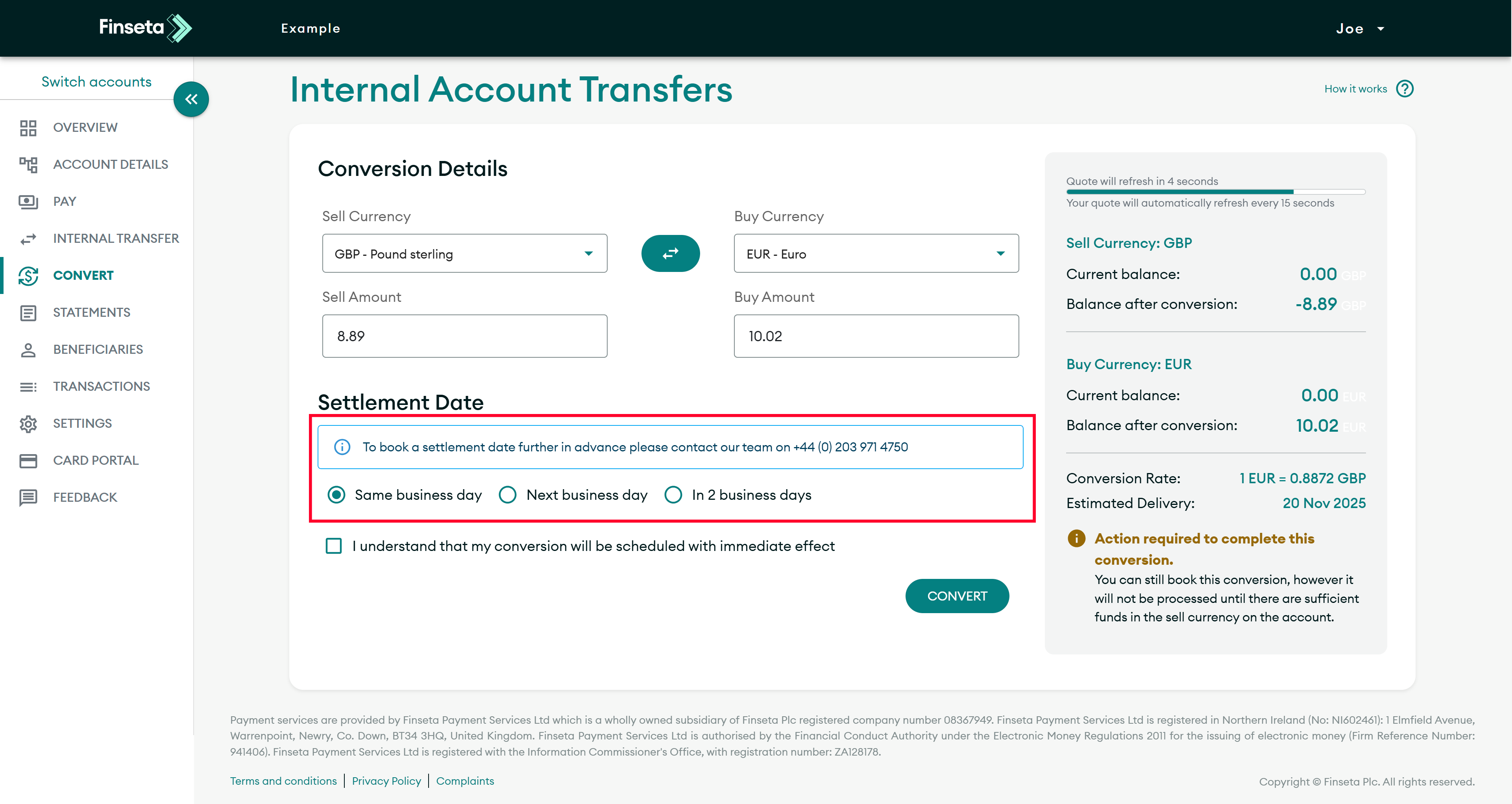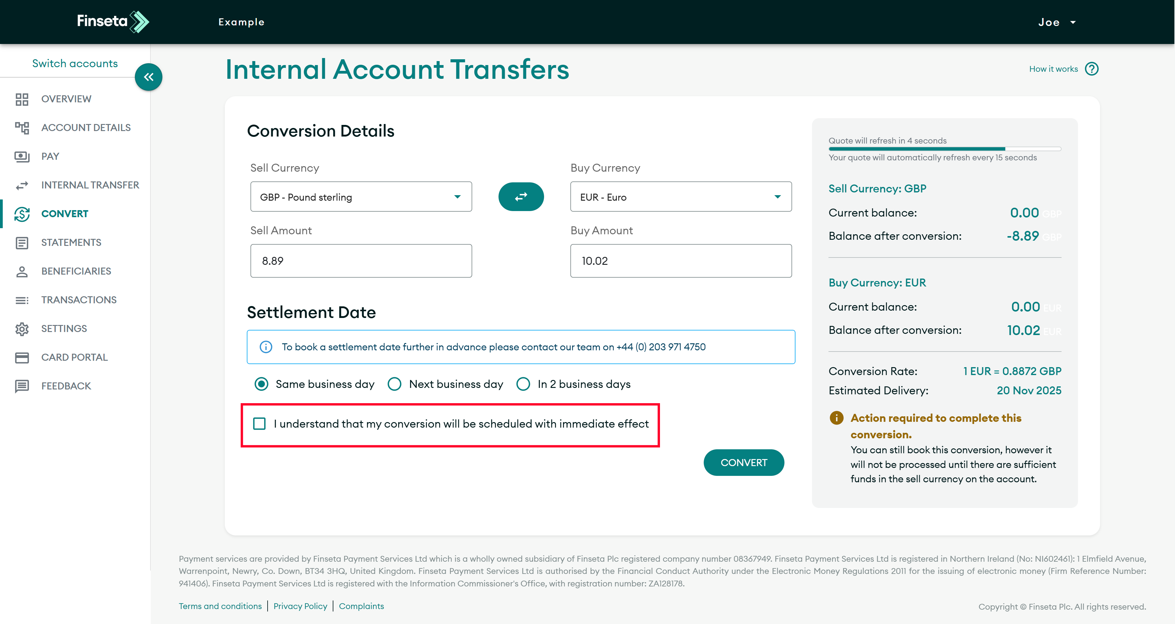 Click to confirm that you understand that your conversion will be scheduled with immediate effect.