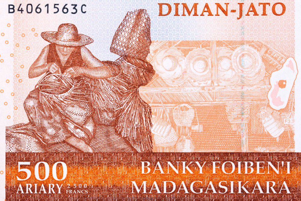 The Ariary is the currency of Madagascar, a huge island off the coast of south eastern Africa. The country is incredibly poor with over 70% of the country living below the poverty line. Its economy has been chronically underdeveloped and its political and financial systems are very weak.
